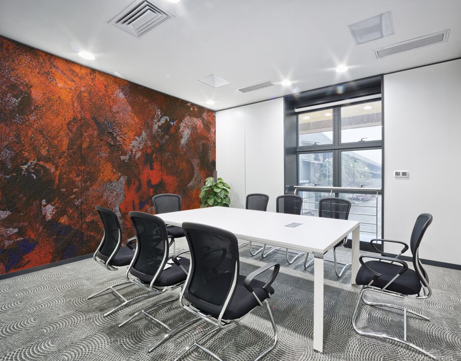Direct print on metal to provide a white smooth satin finish with controlled light reflection.